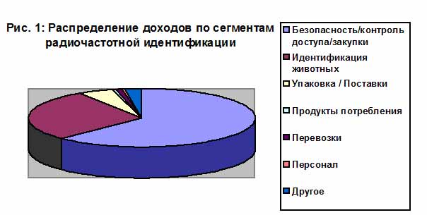 Идентификация животных (домашних и сельскохозяйственных) по объему мировых доходов среди сегментов РЧИ занимает второе место (рис.1) Участившиеся в последние годы транснациональные эпидемии коровьего бешенства и ящура резко усилили интерес к средствам РЧИ. Аналитик агентства IDTechEx в своем исследовании заявляет, что доля рынка РЧИ, приходящаяся на идентификацию животных, значительно вырастет, и в 2014 году применение электронных меток животным достигнет 600 миллионов в год.