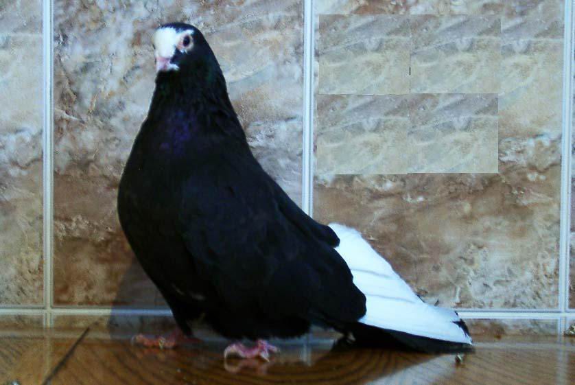 В данный момент в этой породе есть несколько типов. У голубей первого типа большая круглая голова с белым лбом, тёмные глаза с бледными веками. Клюв средней длины, довольно тонкий, телесный. Шея средней длины, переходит в широкую, выпуклую грудь. Корпус сильный, плотный, короткий. Ноги красные, средней длины, неоперённые. Перо жёсткое, плотно прилегающее к телу, глянцевое. В каждом крыле 5-10 маховых перьев первого порядка белые.