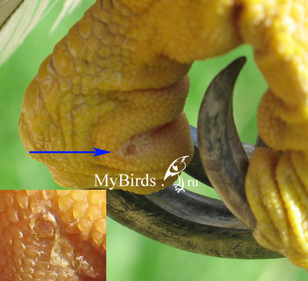 Рисунок 1. Начальная стадия развития намина у ястреба-тетеревятника. Маленькая мозоль может пропасть, а может развиться в серьезную неприятность.