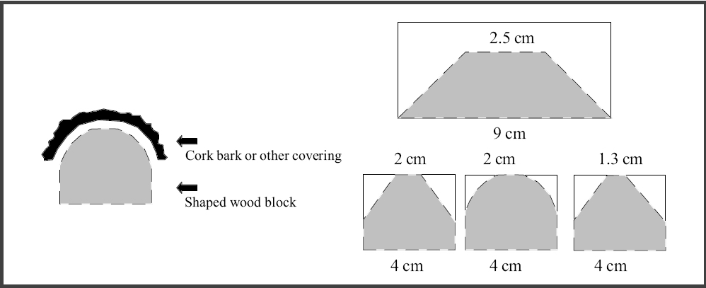 Рисунок 6. Промер лапы хищной птицы для определения правильной ширины дуговой или вольерной присады. Сечения присад для хищников с учетом нанесения покрытий (по Joe N. Caudell, Ken A. Riddleberger (2)).