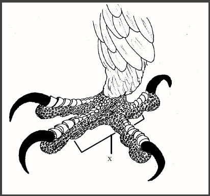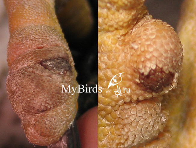 Рисунок 2. Изменение сосочкового эпителия в гладкий ороговевший свидетельствуют о проблемах с лишним весом, недостатке подвижности или неправильном устройстве присад. Ястреб-тетеревятник, диколовленная птица.