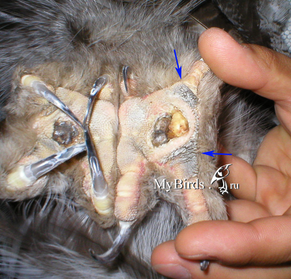 Намины на лапах ловчих птиц – пододерматит (Bumblefoot)