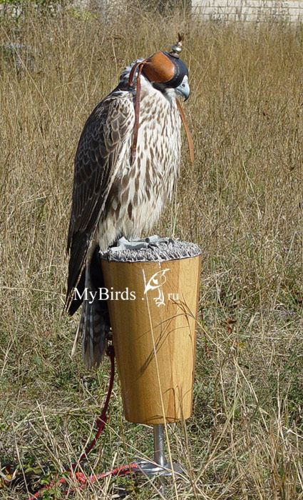 Рисунок 4. Балобан на соколиной присаде (соколиный стул) с плоской поверхностью, покрытой астротурфом.