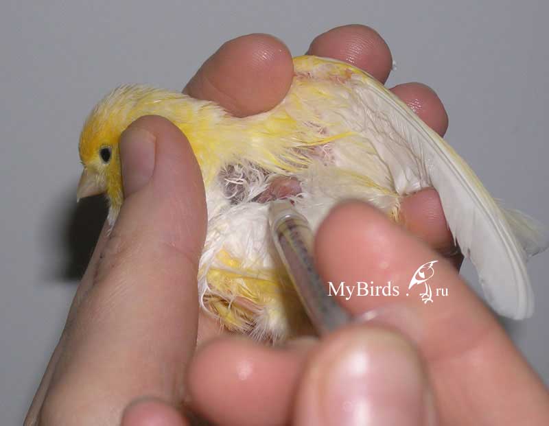 Не смотря на размеры, мелким птицам делать уколы даже проще, чем крупным птицам, хотя бы потому, что с мелкими можно обойтись без помощника.
