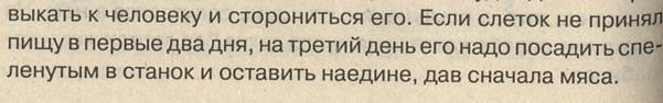 Стр. 48. Правильнее было бы сказать, что если птица опасается брать несколько дней подряд мясо из рук сокольника, то птицу следует оставить с кормом наедине.