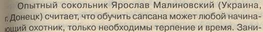 «Во время обучения необходимо помнить, что даже самая ручная ловчая птица никогда не сможет смотреть человеку в глаза или быть преданной как дрессированная собака.»