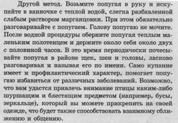 Далее. Автором предпринята группировка информации по рассматриваемым видам попугаев. Идея здравая, ибо каждый вид имеет свои особенности. Но реализация этой идеи – ниже всякой критики.