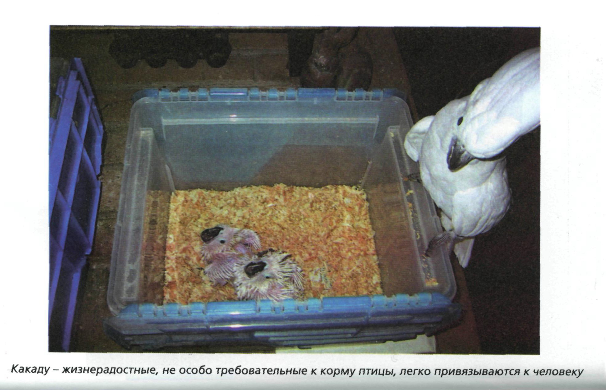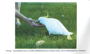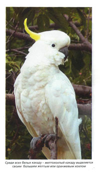 «Большой белый какаду не самый многочисленный из крупных попугаев, живущих рядом с человеком (из-за своей относительной редкости и дороговизны)…»