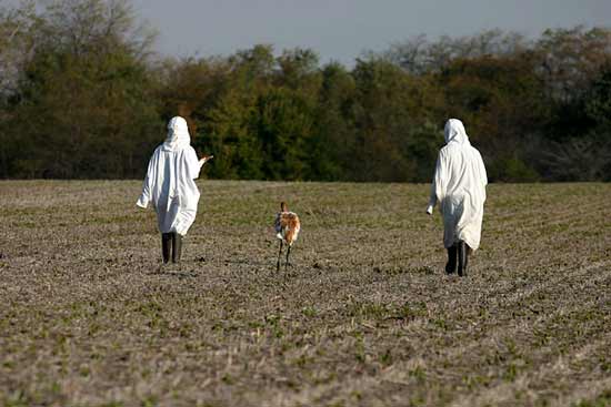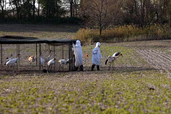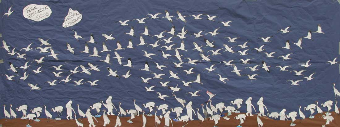 Брук Панипакер ведёт 19 американских журавлей из Sauk County location
