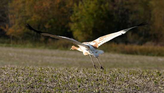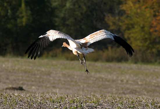 Эти журавли вытянули ноги и слегка их согнули в пяточных суставах, так как они собираются презимляться в Green County, Wisconsin.