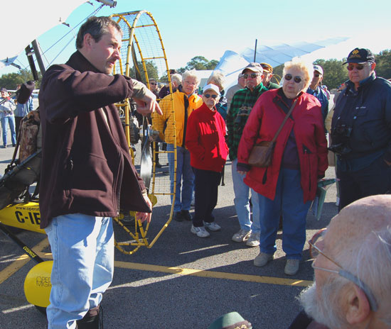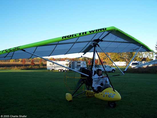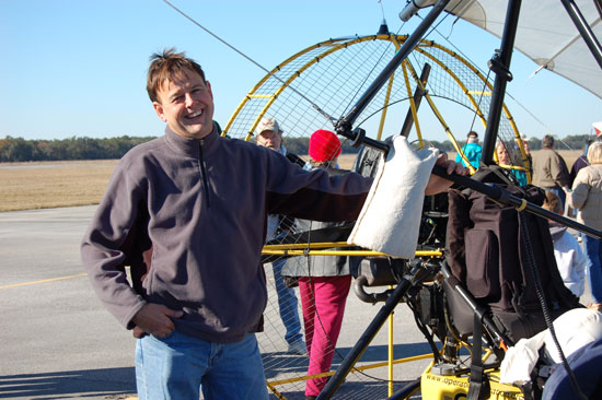Джо Дафф тестирует новую форму крыла, без поддерживающего проволочного каркаса сверху, который потенциально способен травмировать птиц