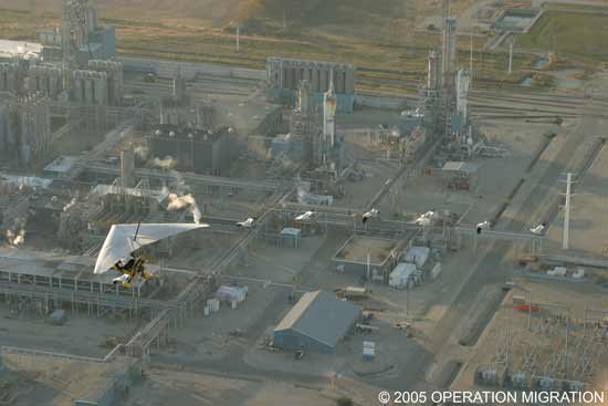 Ричард подхватил, 12 птиц оторвавшися от дельтаплана Брука, с которым осталась 7 птиц. Наш путь проходит через промышленную зону на юге Чикаго.