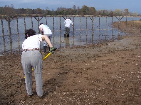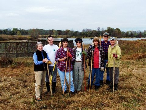 добровольные помощники помогают подготовить лагерь к прибытию птиц.