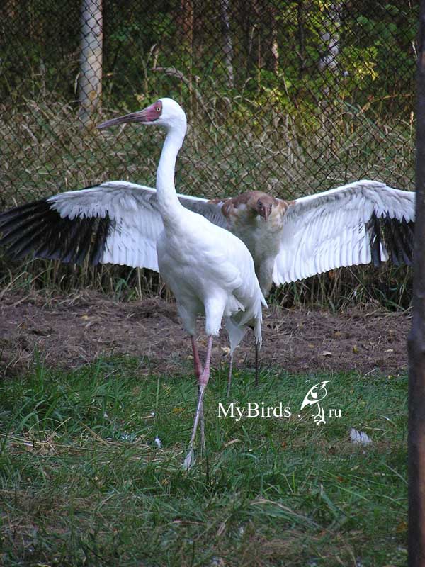В Питомнике редких видов журавлей Окского заповедника живут 25 стерхов, а прошли через него за четверть века, что существует Питомник, в десять раз больше. Номер вылупившегося последним десятым в 2004 г. птенца по имени Иня - 1-266. Единица - это номер вида (стерх в Питомнике, действительно вид номер один, как по численности, так и по вниманию к нему), дальше личный номер птицы. Отца Ини мы зовем Колыма. Этот самец - самый красивый стерх из всех, виденных мною, с чем согласны все сотрудники Питомника.