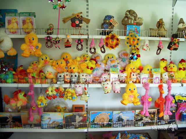 Хочется отдельно остановиться на магазине сувениров. Тут можно не только купить различные товары на птичью тематику, но и обзавестись фирменными сувенирами парка птиц - открытками, поделками и пр. Тут же имеется небольшой книжный отдел, где продаются книги на птичью тематику. Здесь же можно приобрести самих птиц, разведённых в зоопарке и оставить запись в журнале для посетителей.
