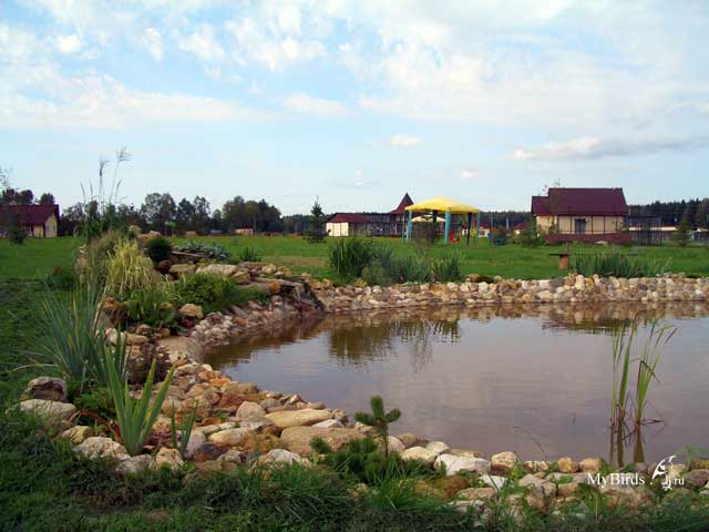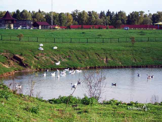 Пока не обустроена до конца территория двух прудов, но побродить по плотине между ними можно, рассмотрев различных водоплавающих птиц, как домашних, так и диких. Тут же рядом находятся вольеры для журавлей (сейчас в парке имеется пара серых журавлей, пара красавок, и один японский журавль).
