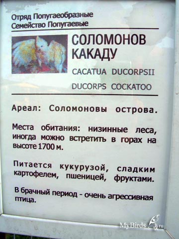 На клетке каждого говоруна имеется небольшая справка со списком слов и фраз, произносимых птицами, правда, кроме беспрестанно болтавшей священной майны, нам не удалось вытянуть ни звука из остальных обиталей этого раздела.