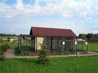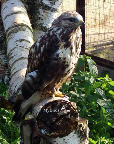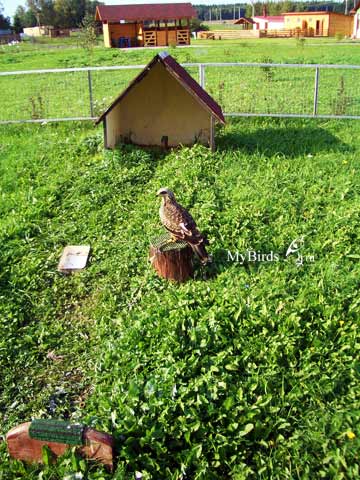 Рядом с вольерами для хищных птиц построен небольшой загончик, где хищников (нельзя сказать «ловчих птиц», так как вместе с балобаном, сапсаном и ястребом – перепелятником, на присадах сидят канюк и черный коршун) содержат на присадах для ловчих птиц и на т.н. полётно-трассовом устройстве (шнур от должика прикреплён к металлическому проводу, идущему от домика птицы до присады). Посетителей от птиц отделяет только низкий заборчик, что позволяет без помех, с близкого расстояния рассмотреть птицу. Сами хищники при этом не бьются в истерике при приближении людей.