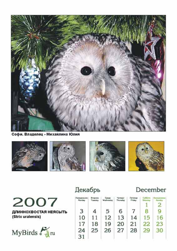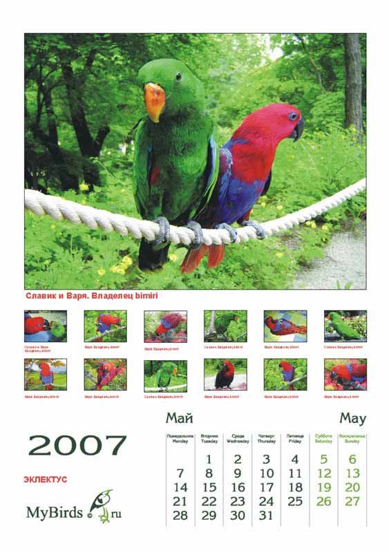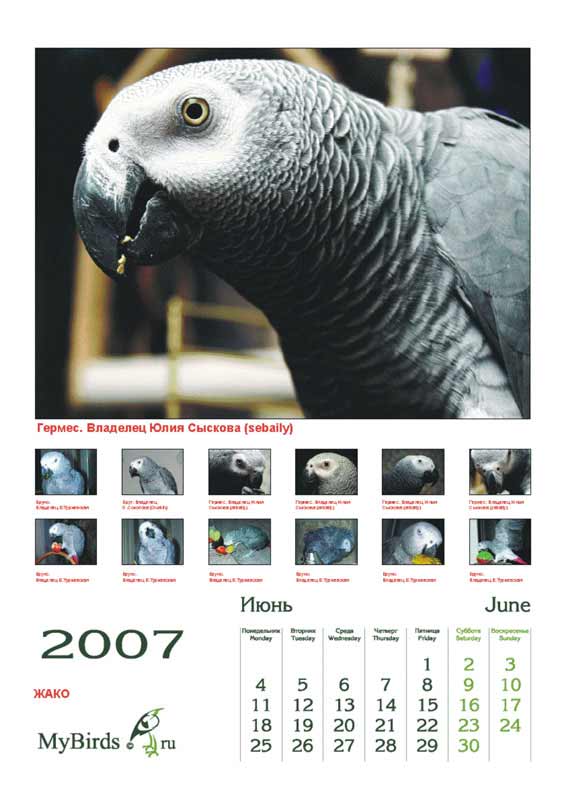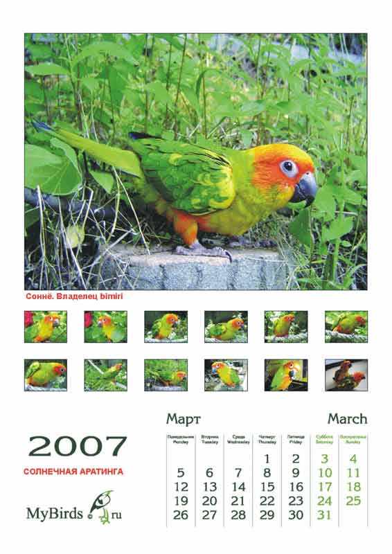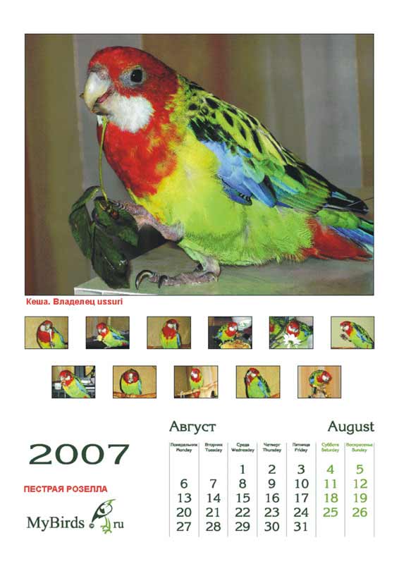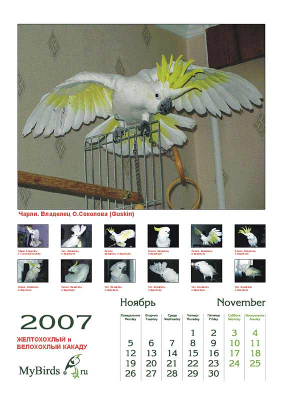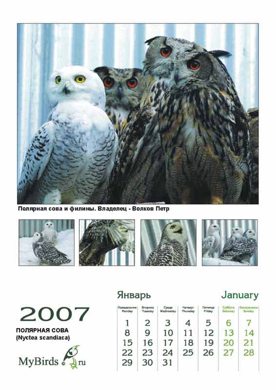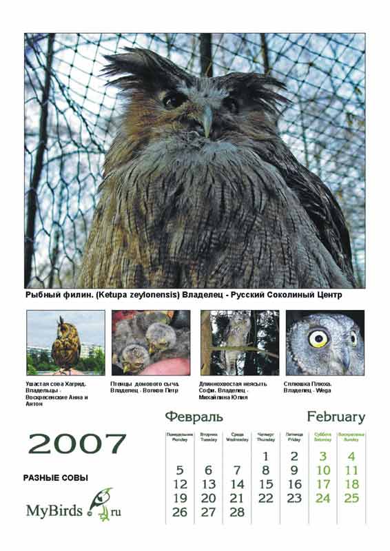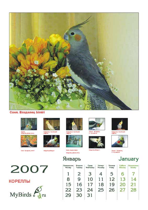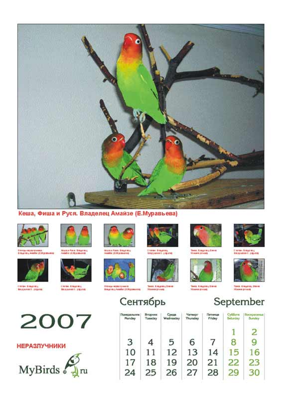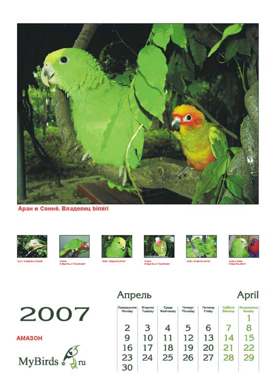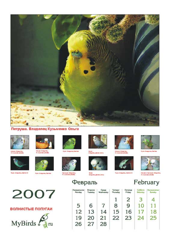 Стоимость календаря 400 рублей, все средства полученные от продажи календарей пойдут на поддержание портала MyBirds.ru в рамках программы "помоги MyBirds.ru" .
