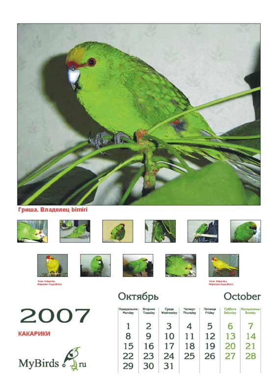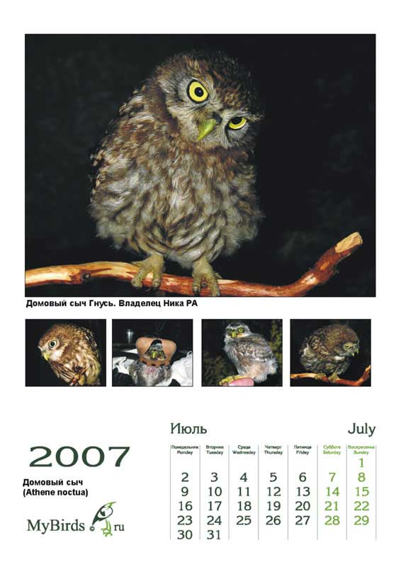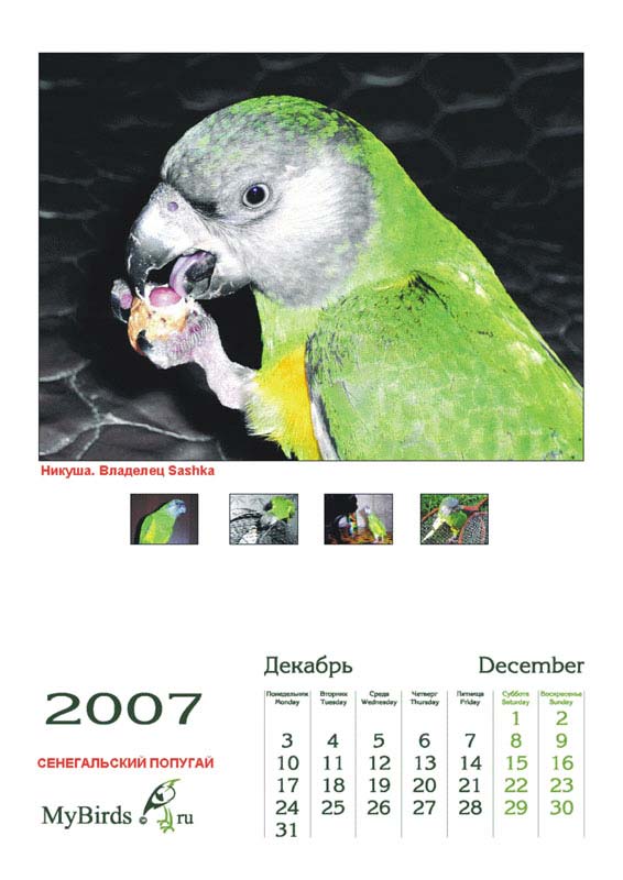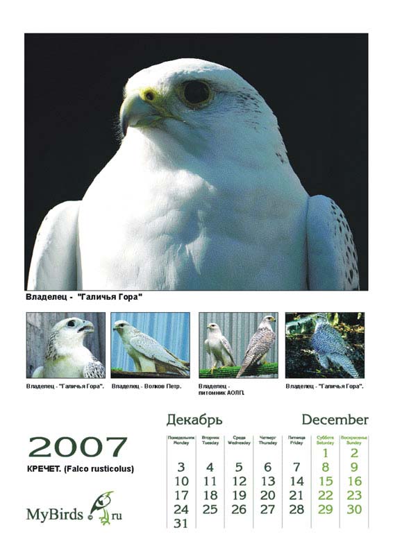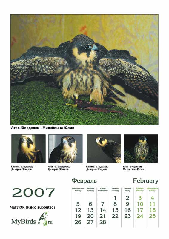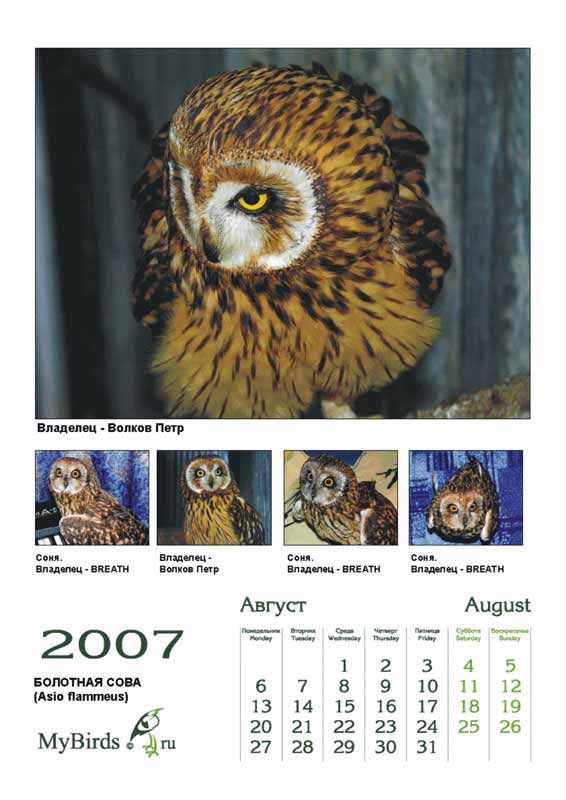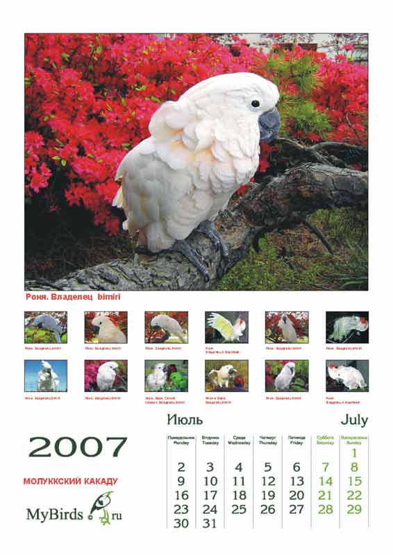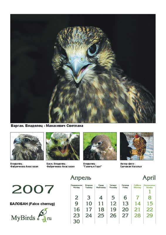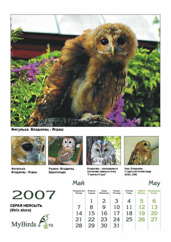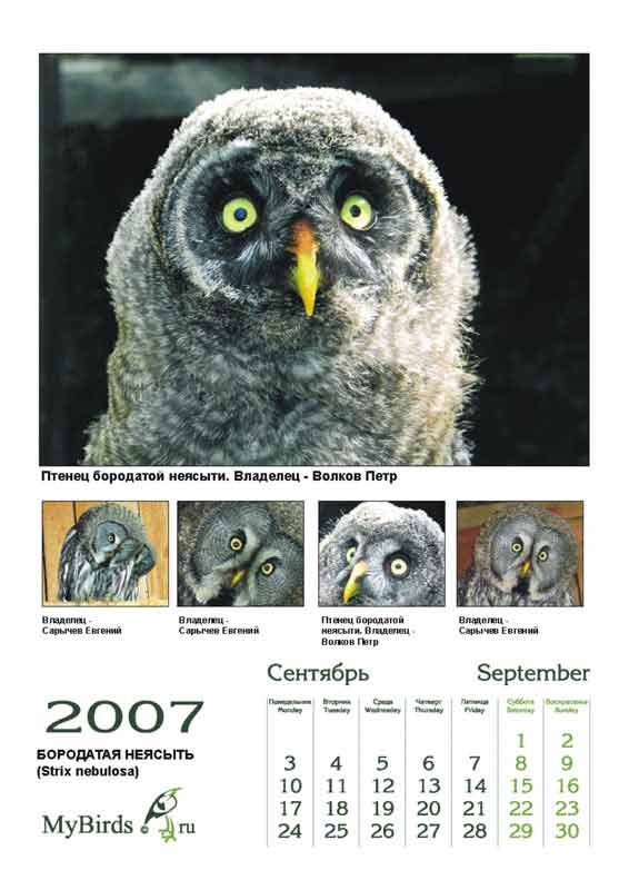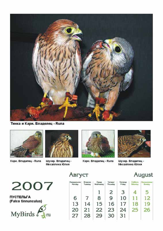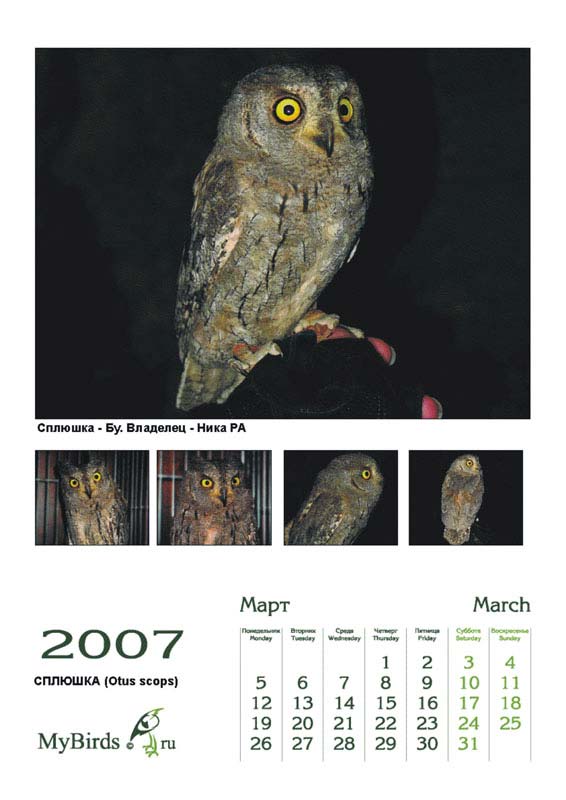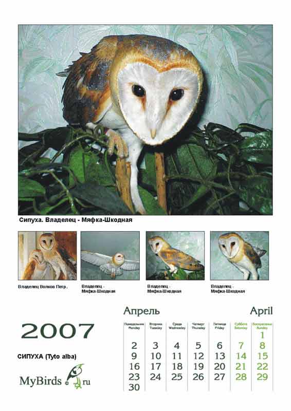 Стоимость календаря 400 рублей, все средства полученные от продажи календарей пойдут на поддержание портала MyBirds.ru в рамках программы "помоги MyBirds.ru" .