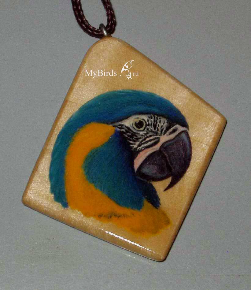Мы выпустили кулоны с изображением попугаев. Все кулоны - ручная авторская работа профессионального художника анималиста Сергея Погонина. Кулоны сделаны из дерева, покрыты лаком.
