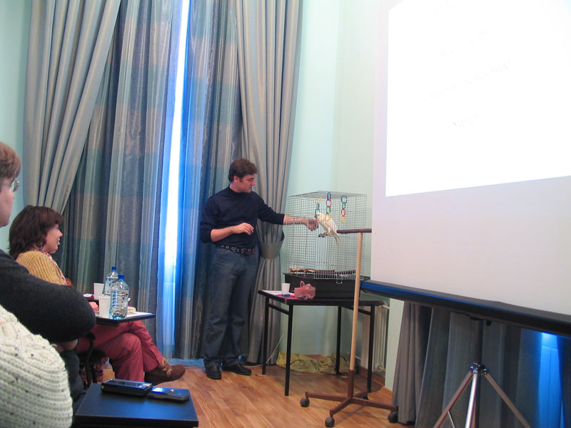 Третий углубленный семинар, организованный для тех, кто прослушал программу базовых семинаров, стал фактически первым таким семинаром на пространстве бывшего СССР. Никогда ранее не организовывались семинары по общению с попугаями с участием самих попугаев. Вторым соведущим семинара стал