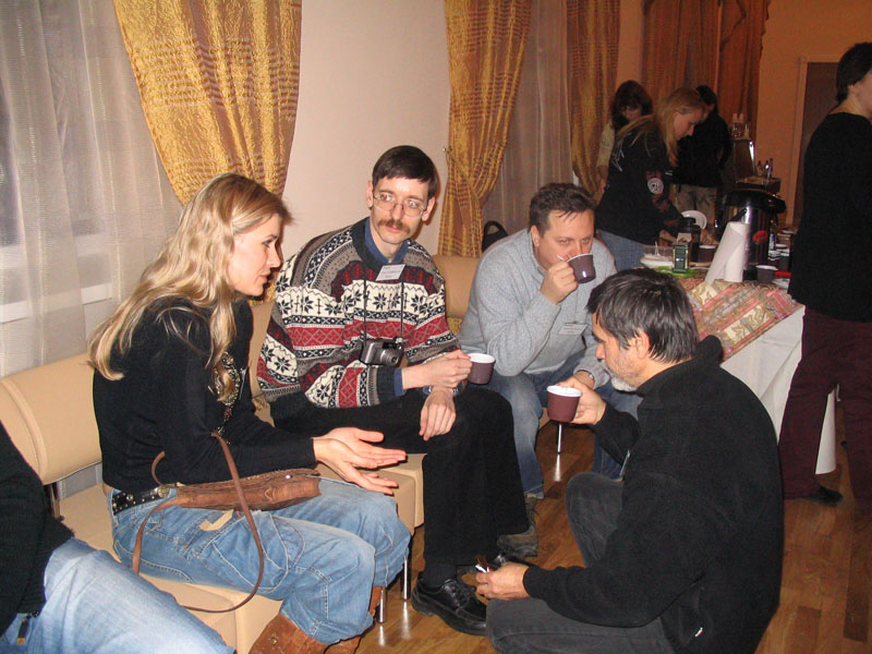 В перерывах шло постоянное общение семинаристов друг с другом (практически все участники семинаров уже давно знают друг-друга по общению на форумах). Тут обсуждался самый широкий круг вопросов от проблем содержания попугаев до их защиты в природе.